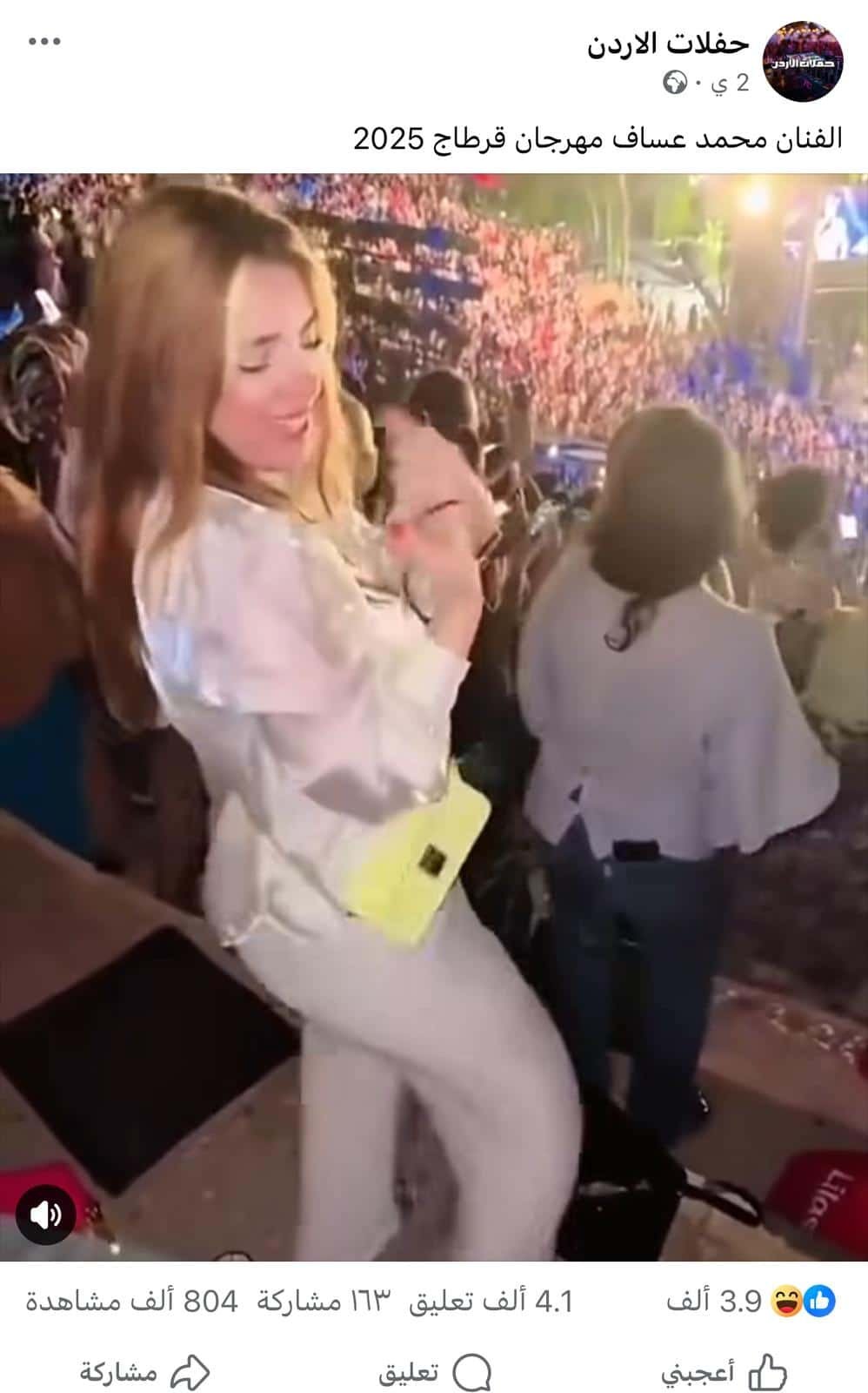 مقطع يظهر فتاة ترقص على أغنية “وين ع رام الله”بحفل الفنان محمد عساف في مهرجان قرطاج