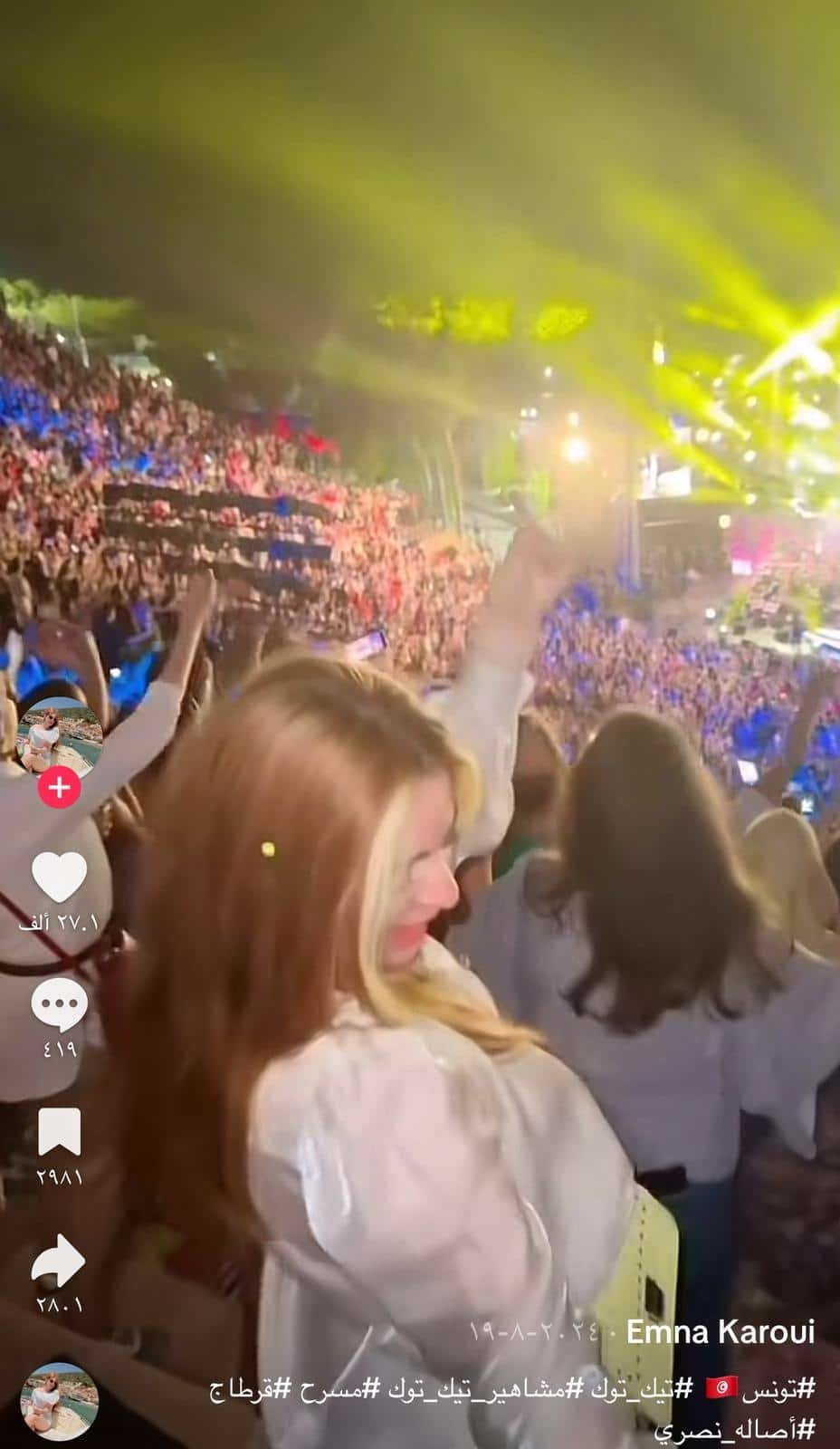 النشر السابق للفيديو عبر حساب حساب ” eman.karouii “ على منصة تيك توك بتاريخ 19 أغسطس / آب عام 2024
