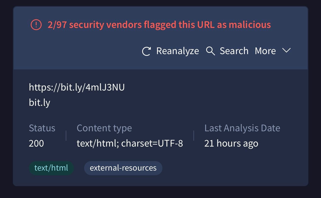تحرّى المرصد الفلسطيني “تحقق” الرابط الأول المتداول، والذي زُعم أنه تابع للجنة الدولية للصليب الأحمر، من خلال فحصه عبر موقع “فيروس توتال” المتخصص في تحليل الروابط والملفات المشبوهة، وأظهرت نتائج الفحص أن الرابط يُستخدم لأغراض التصيّد الإلكتروني، مما قد يعرّض المستخدمين لخطر اختراق أجهزتهم وسرقة بياناتهم الشخصية.