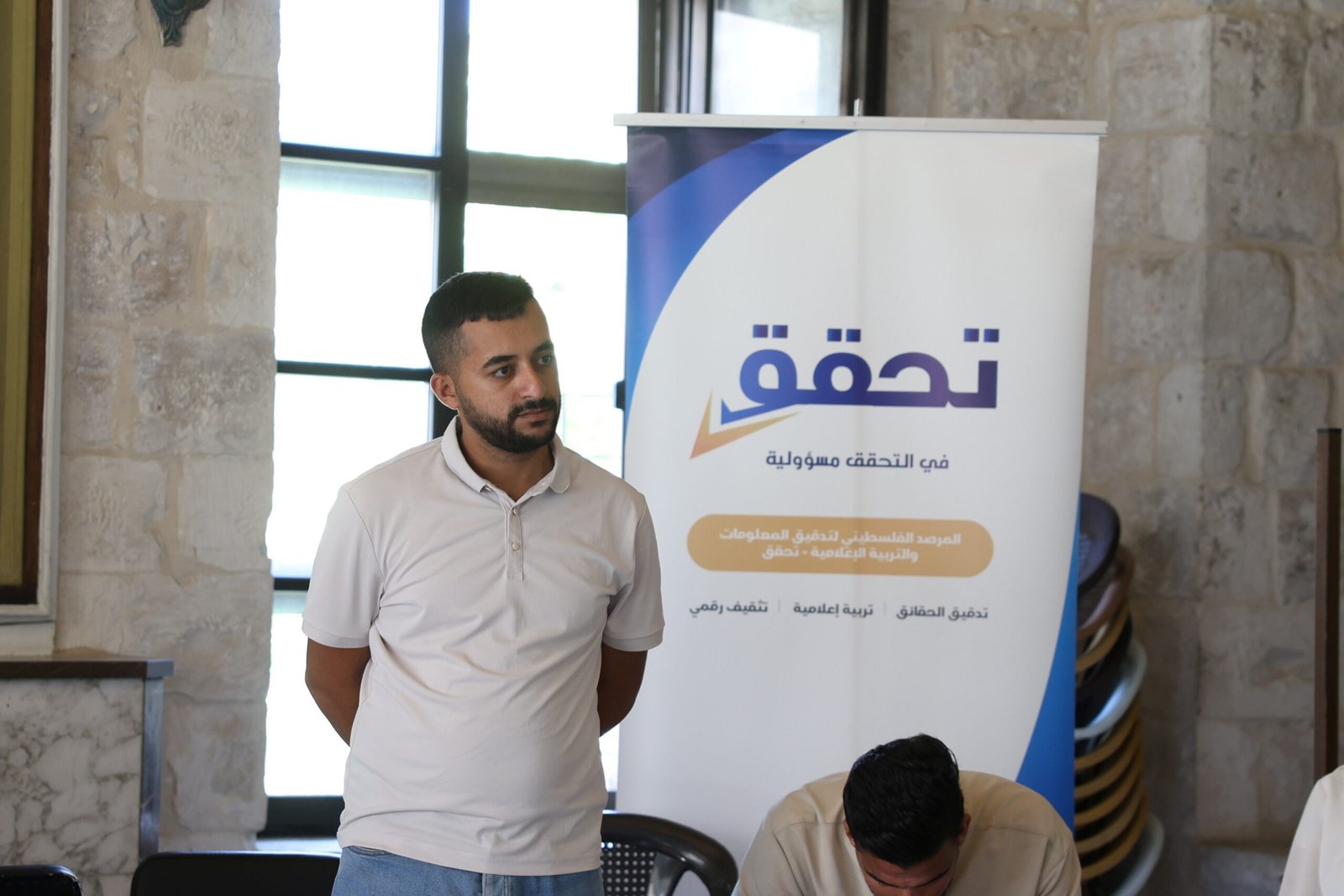 انطلق اليوم الأحد، تدريب متخصص في السلامة النفسية والمهنية يستهدف العاملين والمتطوعين في المرصد الفلسطيني “تحقق”، إضافة إلى مجموعة من الخريجين الجدد الملتحقين حديثاً بميدان العمل الصحفي، بتنظيم من مؤسسة “دراية” للتربية الإعلامية والرقمية، وبمبادرة من “تحقق”، وبدعم من الشبكة الدولية لتدقيق الحقائق (IFCN)، ضمن مشروع .