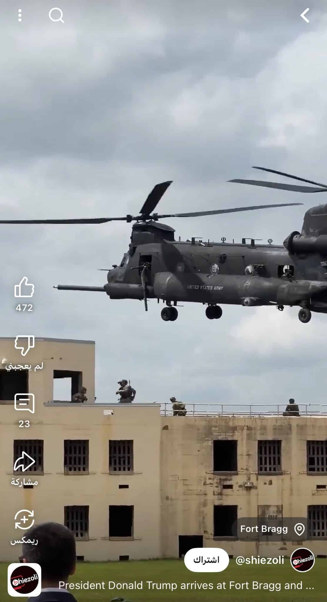 مقطع فيديو سابق لزيارة الرئيس ترامب لقاعدة فورت براغ متداول بأنه لعملية إنزال قوات “دلتا” الأمريكية للقبض على الرئيس الفنزويلي