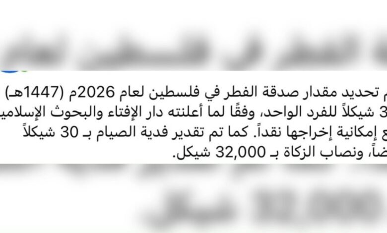 لا صحة لتحديد صدقة الفطر بـ 30 شيكلًا في فلسطين لعام 2026