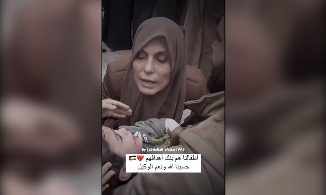 [:ar]The video depicts a grandmother shocked because of the martyrdom of her granddaughter, despite the survival of her grandson and the husband of her daughter… and it isn’t a staged theatrical act[:]