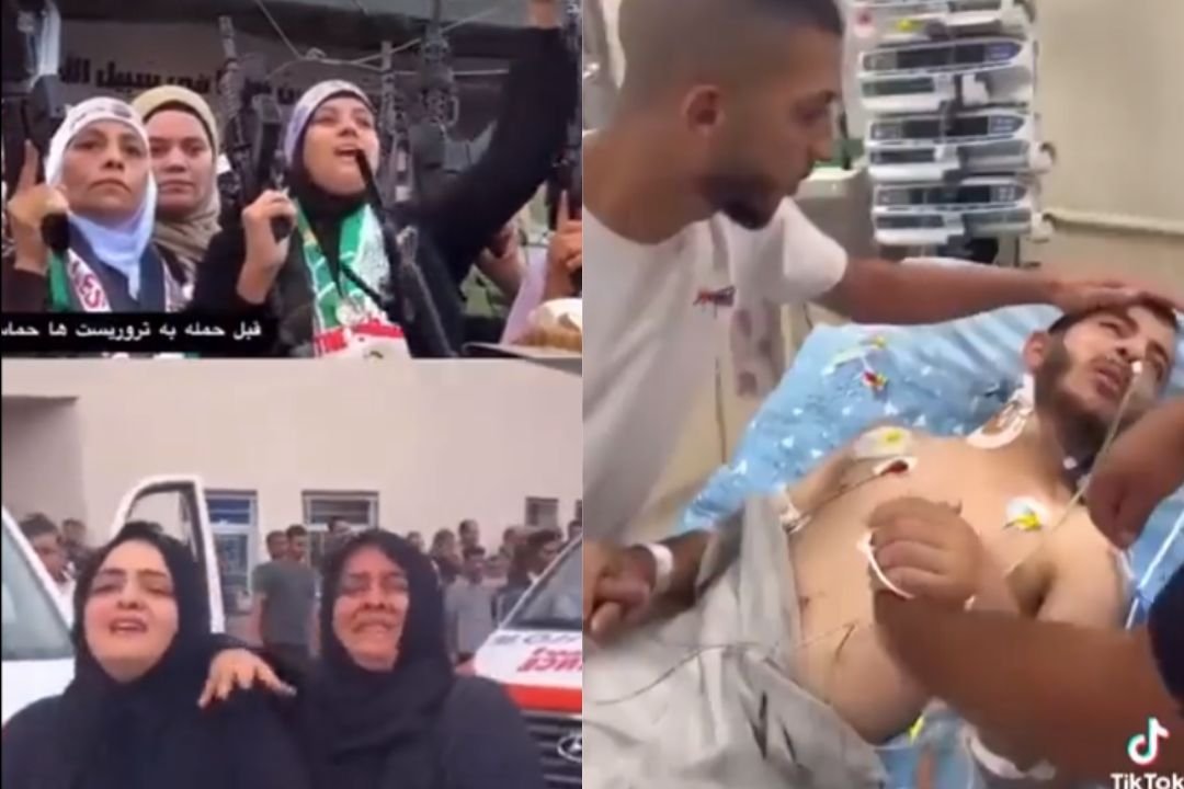 1. After celebrating the fall of rockets on Israel, activist Saleh Al-Jaafari is injured and pretends to be a victim of Israeli airstrikes. 2. Women from Gaza are demonstrating that they’re victims of the Israeli war in Gaza. |