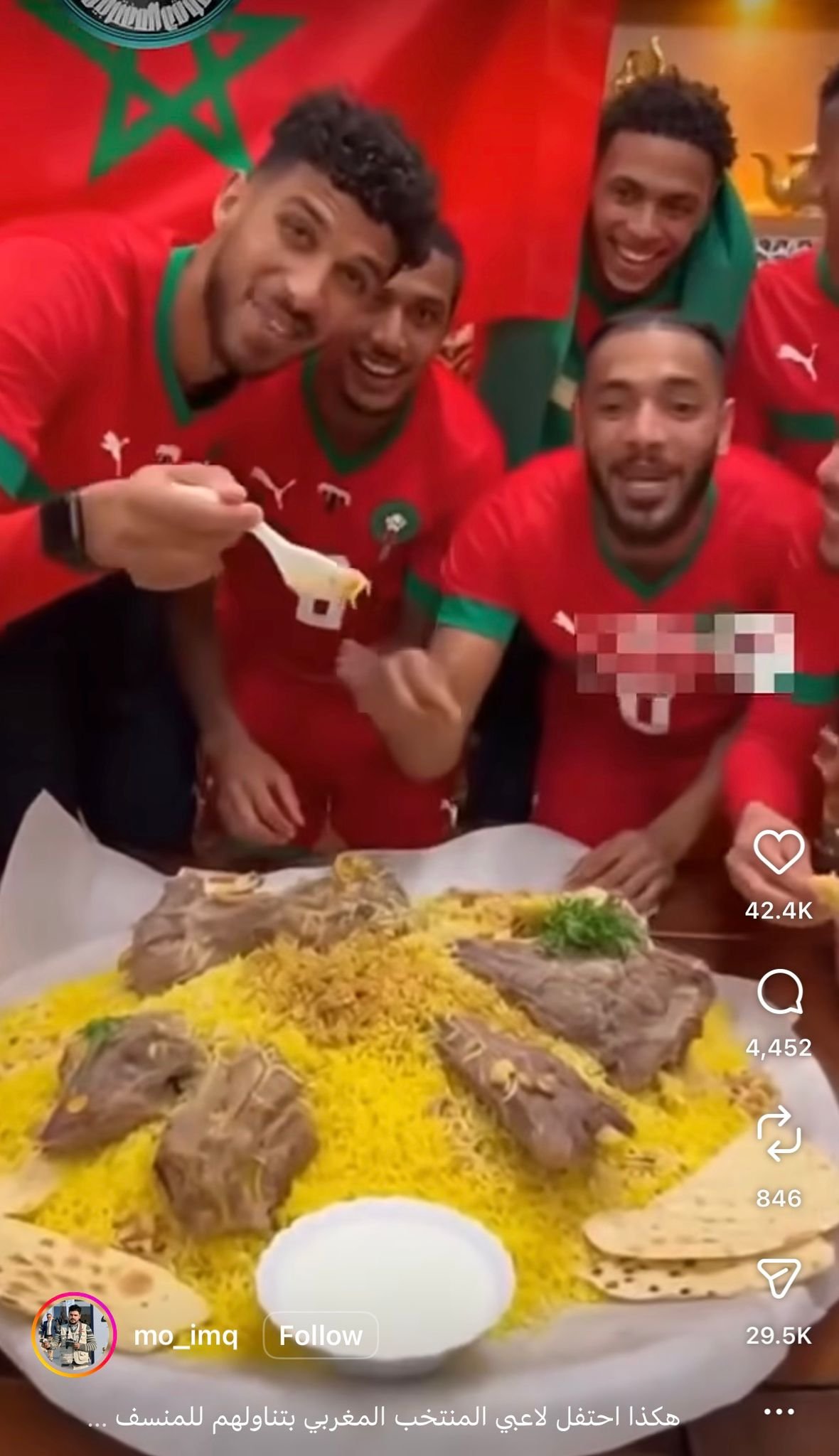 | هكذا احتفل لاعبي المنتخب المغربي بتناولهم للمنسف الاردني بعد فوزهم على منتخب الاردن بكأس العرب |