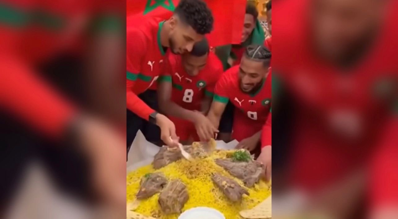 داولت صفحات وحسابات على منصات التواصل الاجتماعي مقطع فيديو مرفق بادعاء يقول: “هكذا احتفل لاعبي المنتخب المغربي بتناولهم للمنسف الاردني بعد فوزهم على منتخب الاردن بكأس العرب”.
