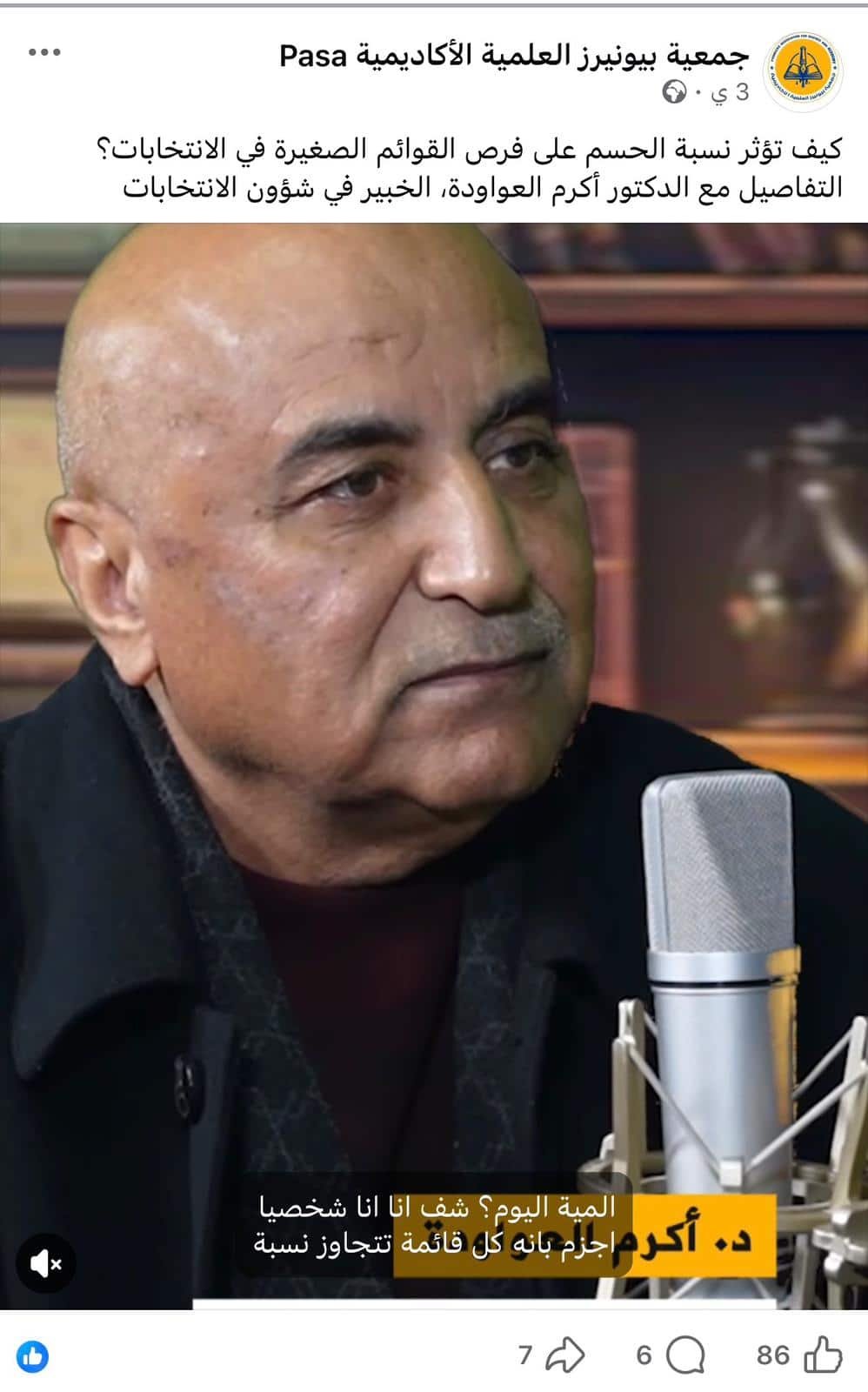 نشرت صفحة جمعية “بيونيرز – PionEeers” العلمية والأكاديمية تصريحاً للدكتور أكرم العواودة، الذي عرّفته بأنه خبير في شؤون الانتخابات، قال فيه: “أجزم بأن كل قائمة تتجاوز نسبة الحسم سيكون لها مقعد بشكل مؤكد”، نافياً صحة الفرضيات التي تشكك في هذه النقطة.