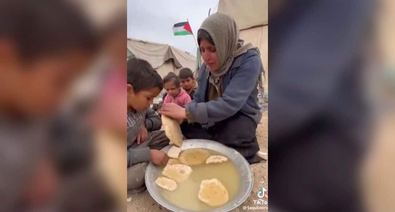تداولت صفحات وحسابات على منصات التواصل الاجتماعي مقطع فيديو تزعم أنه يصور أمًّا من قطاع غزة تحاول إطعام أطفالها خبزًا يابسًا مغموسًا بالما، في مشهد مأساوي قيل إنه يعكس اتقبال أطفال القطاع لشهر رمضان المبارك.