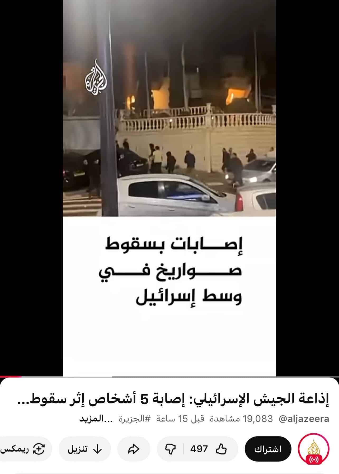 وأظهر التدقيق أن المقطع يوثّق سقوط شظية صاروخية في بلدة جلجولية، ولا علاقة له باستهداف منزل وزير الأمن القومي الإسرائيلي إيتمار بن غفير. كما تبيّن أن المقطع نُشر سابقًا عبر منصة “الجرمق” الإخباري على موقع “إكس” بتاريخ 18 مارس/آذار الجاري، إضافة إلى نشره عبر قناة “الجزيرة” على يوتيوب.