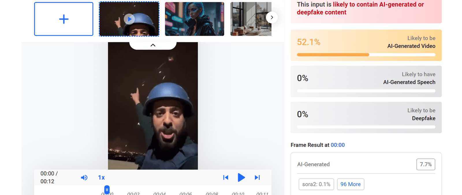 كما أظهر فحص الفيديو عبر أداة Hive Moderation، المتخصصة في كشف المحتوى المُنشأ رقميًا، أن المقطع مولّد بالذكاء الاصطناعي بنسبة بلغت 52.1%.