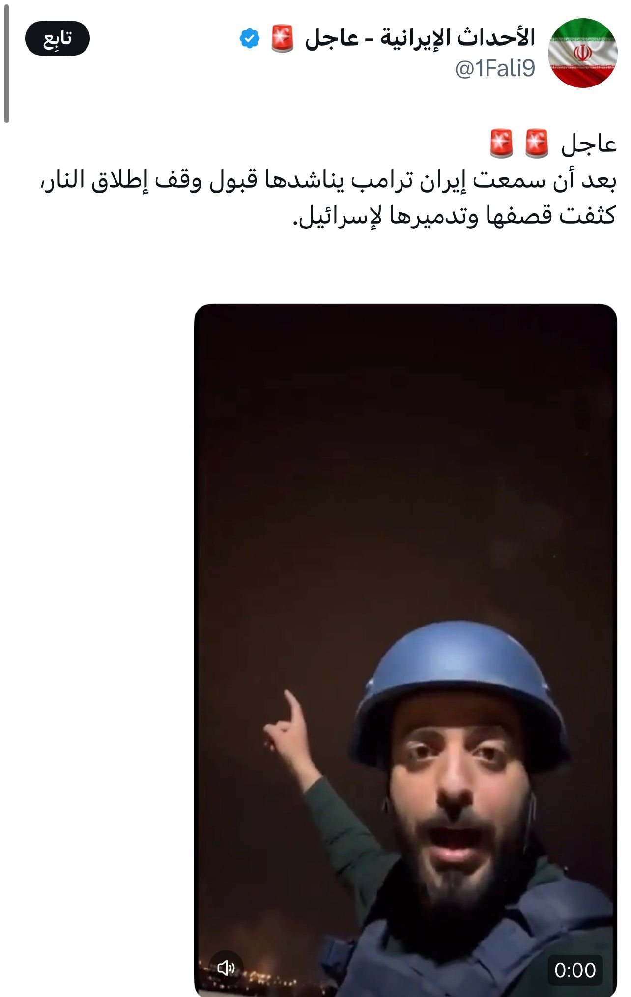 إن فبركة شهادة صحفية ميدانية تمنح الادعاء مصداقية زائفة، إذ إن ظهور شخص بصفة “صحفي” يوحي بأن المعلومات موثقة ومنقولة من موقع الحدث، بينما هي في الواقع غير صحيحة. وفي سياق التوتر العسكري بين إيران وإسرائيل، يسهم هذا النوع من المقاطع في تضخيم الإحساس بالتصعيد ودفع الجمهور إلى تبني روايات غير دقيقة حول تطورات ميدانية حساسة، خاصة عند ربطها بتصريحات سياسية مثل دعوات وقف إطلاق النار.