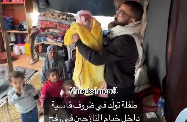 التشكيك بفيديو لطفلة حديثة الولادة داخل خيمة في رفح والادعاء بأنها “دمية”